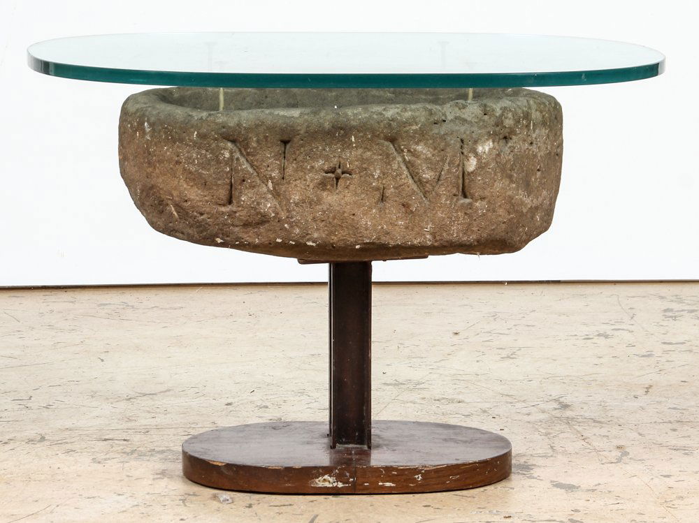 Antique Stone Baptismal Font Table
