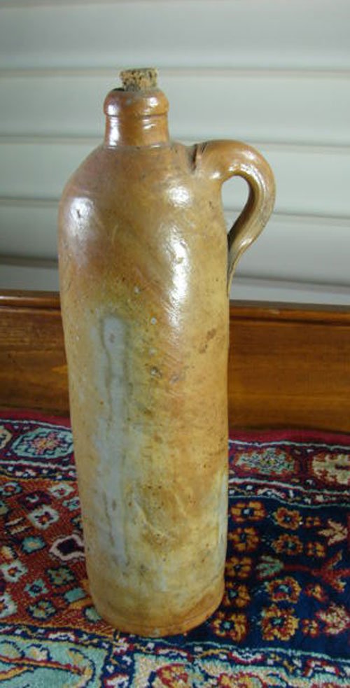 Antique Stoneware Bottle with applied handle. Marke