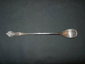 SoldANTIQUE VICTORIAN STERLING SPOON CADDY & (12) SPOONS -ANTIQUE VICTORIAN STERLING SPOON CADDY & (12) SPOONS - Includes pierced spoon caddy, (11) Whiting Sterling spoons and (1) unknown mark Sterling spoon; Weights: Caddy 10.57 ozt, spoons 7.66 ozt, totalSee Sold Price