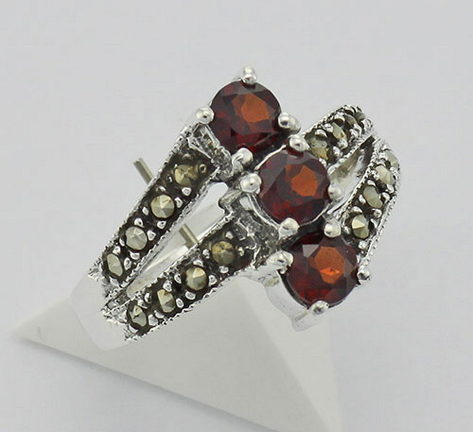 Antique Style Garnet Marcasite Ring - Sterling Silver