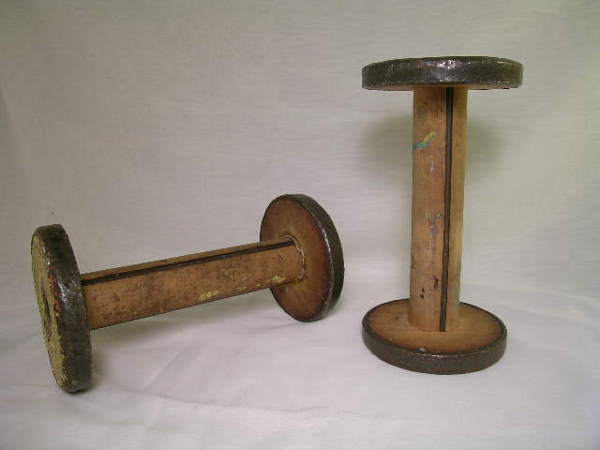 ANTIQUE THREAD SPOOLS WOOD METAL LARGE 2 PCS
