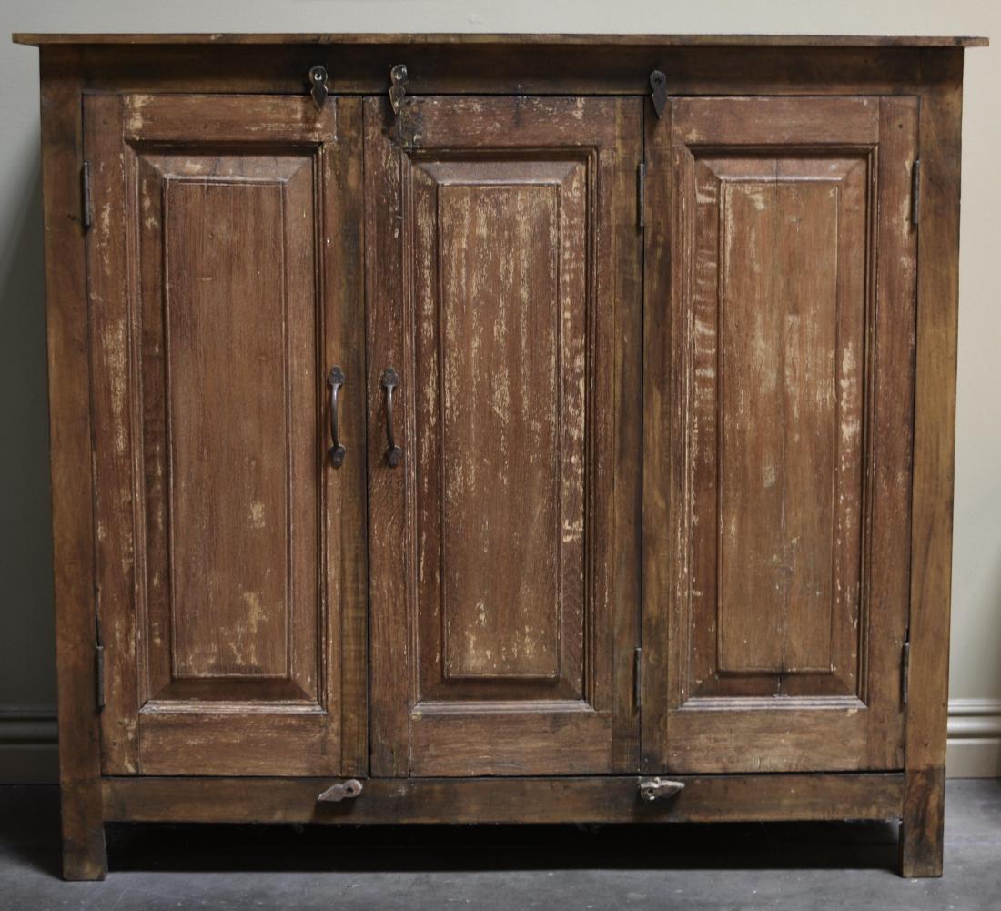 SoldWEATHERED HERRINGBONE PATTERN THREE DOOR CABINETWEATHERED HERRINGBONE PATTERN THREE DOOR CABINET. Height: 36 in. by Width: 39 in. by Depth: 16 in.See Sold Price