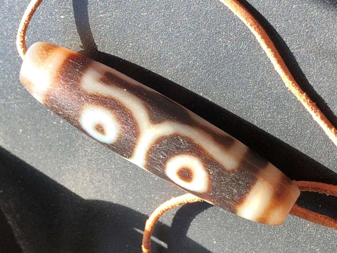 SoldANTIQUE TIBET DZI BEAD with Zhu Sha DotANTIQUE TIBET DZI BEAD with Zhu Sha Dot , length 2"See Sold Price