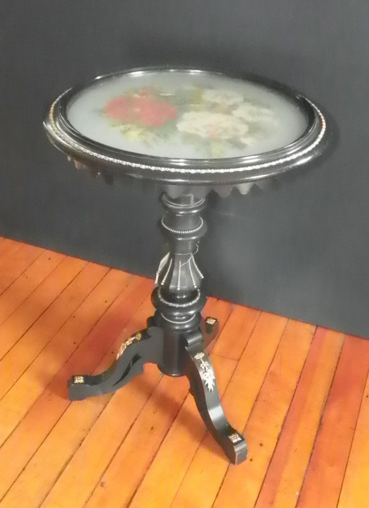 ANTIQUE TILT TOP TABLE BZ & NEEDLEPOINT CTR 4804