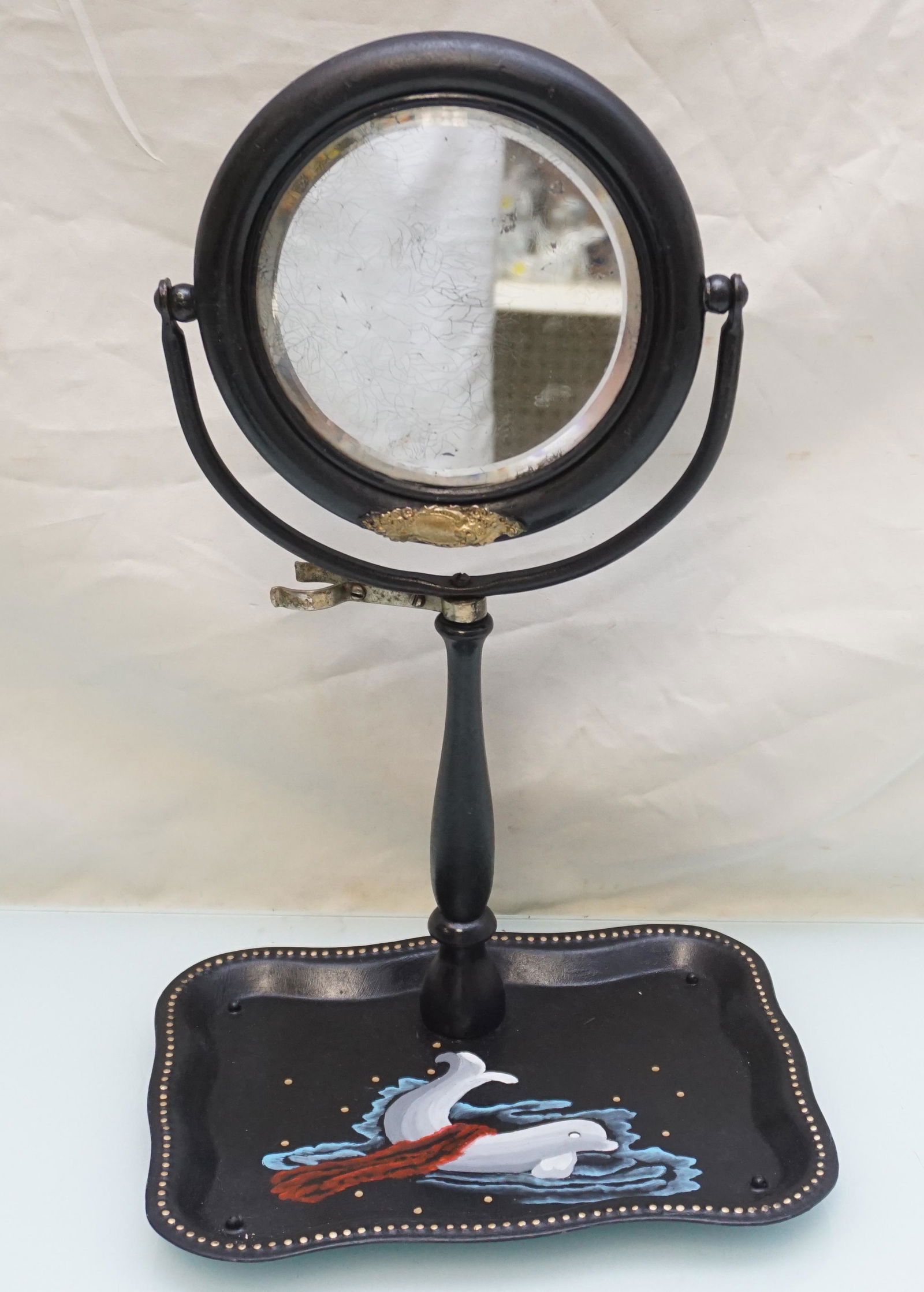 ANTIQUE TOLE PAINTED SHAVING MIRROR