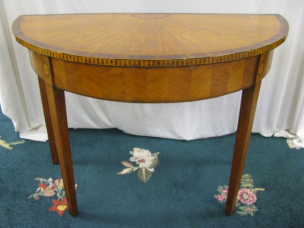 ANTIQUE VENEER INLAY HALF MOON CONSOLE TABLE