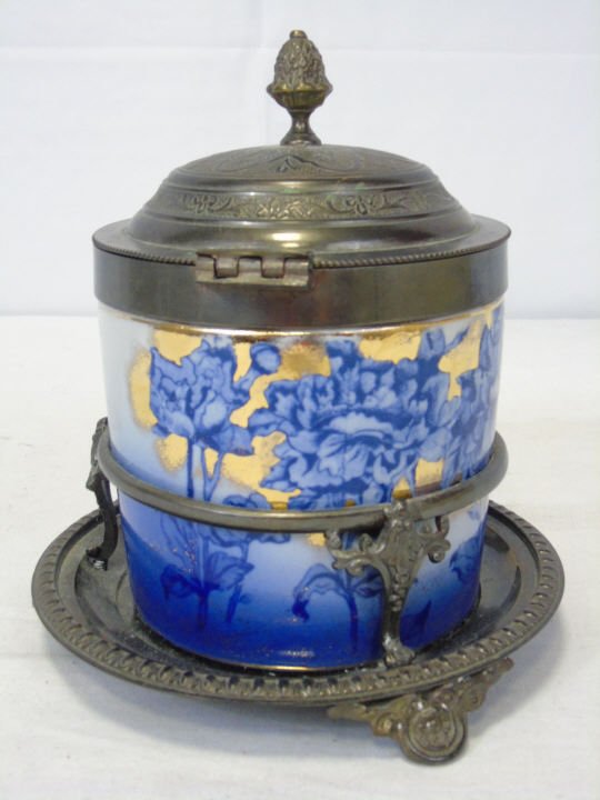 Antique Victorian Flow Blue Tea Caddy Biscuit