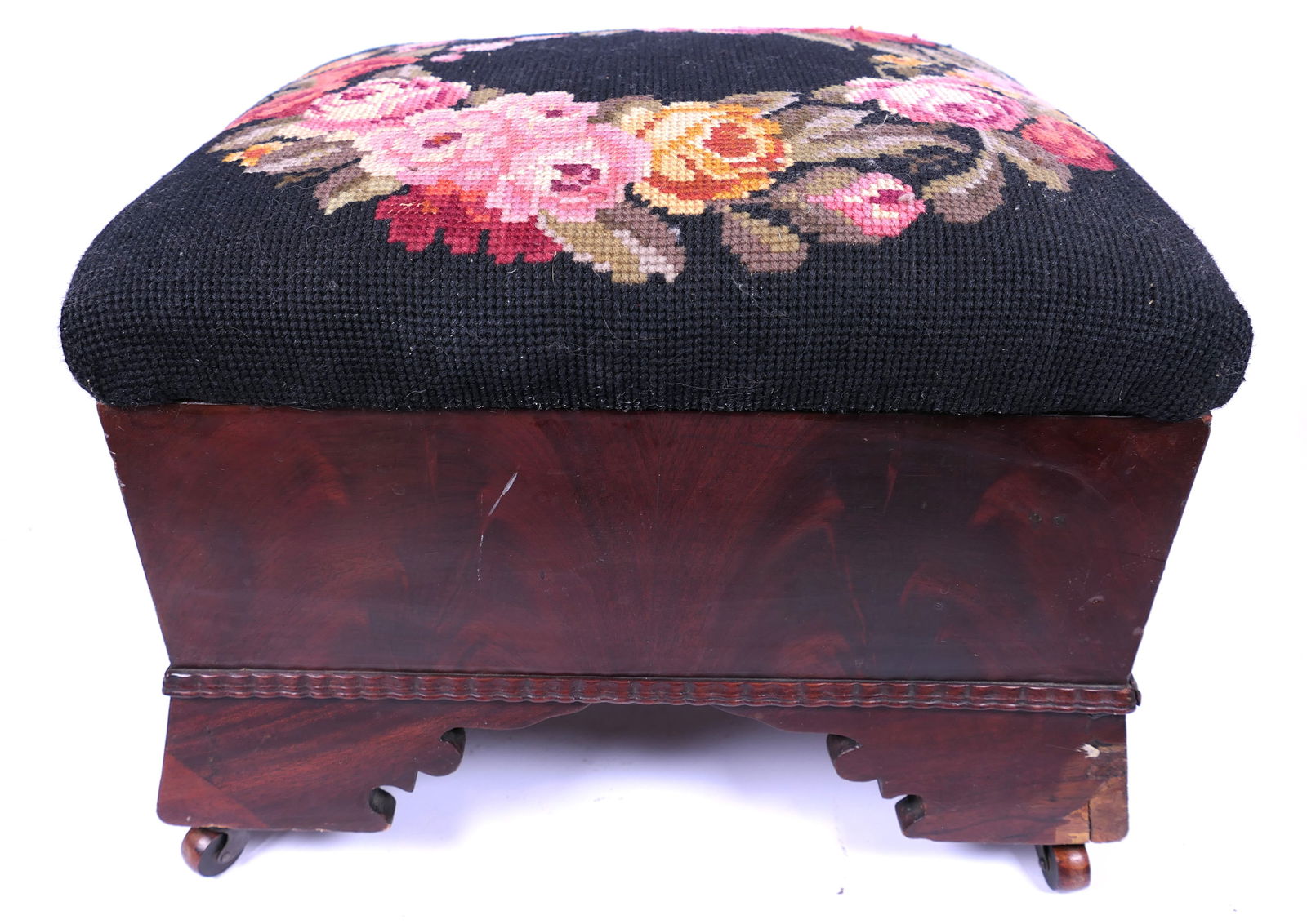 SoldVICTORIAN WALNUT ANTIQUE NEEDLEPOUNT FOOT STOOLVICTORIAN WALNUT ANTIQUE NEEDLEPOUNT FOOT STOOL 16 X 20 X 10"See Sold Price