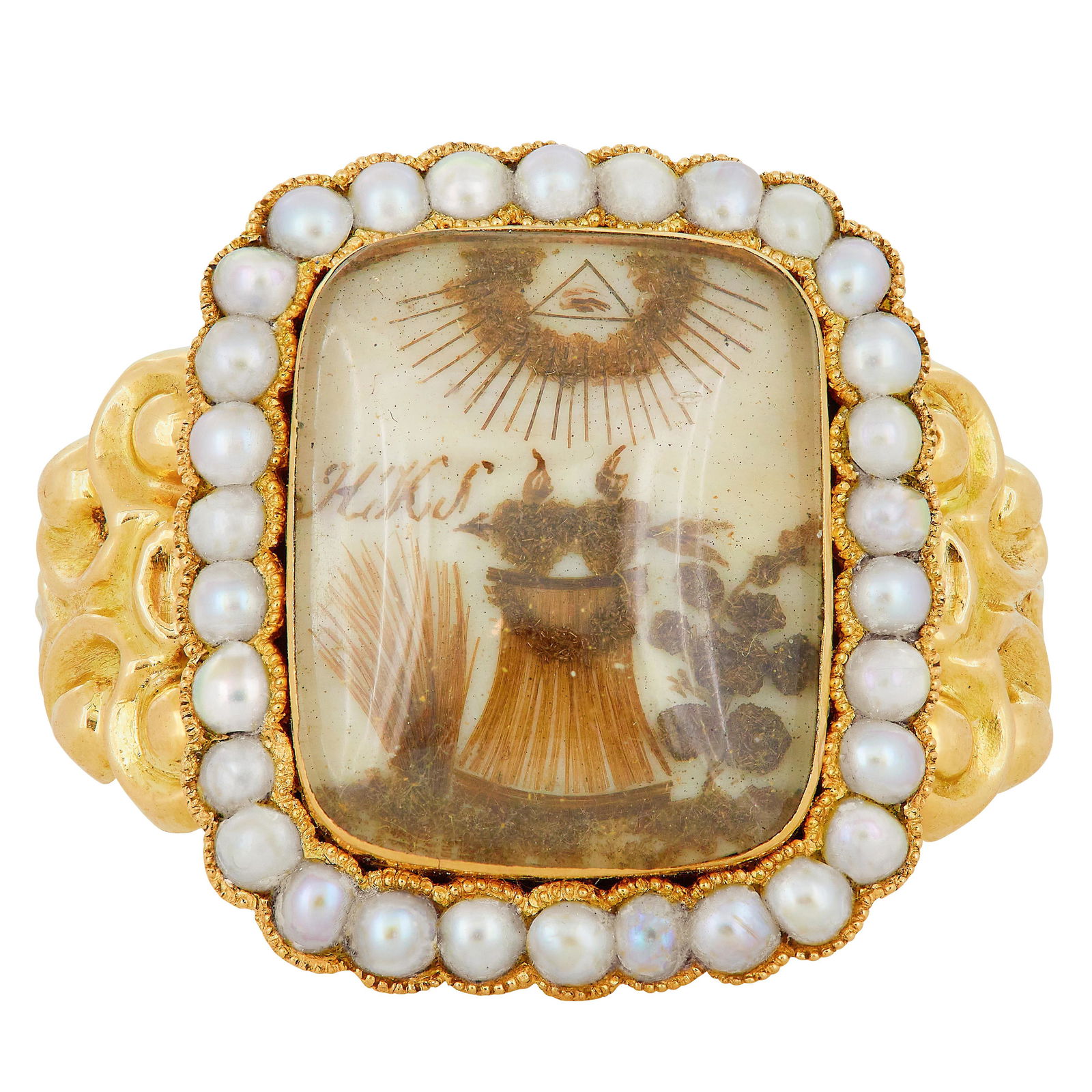 ANTIQUE GEORGIAN GOLD BLACK ENAMEL PEARL HALO LOCKET FRONT MOURNING RING AFBanks Jewellery Auctions4.3(7)£50
