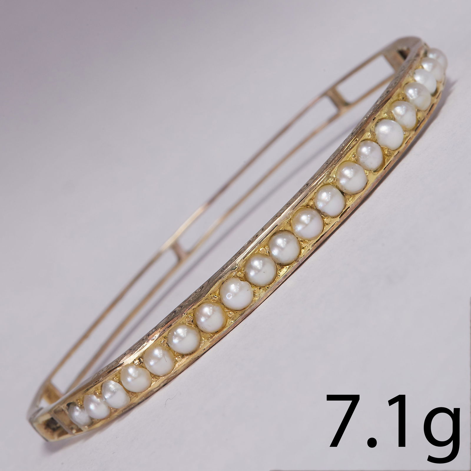 ANTIQUE VITORIAN PEARL HINGED GOLD BANGLE
