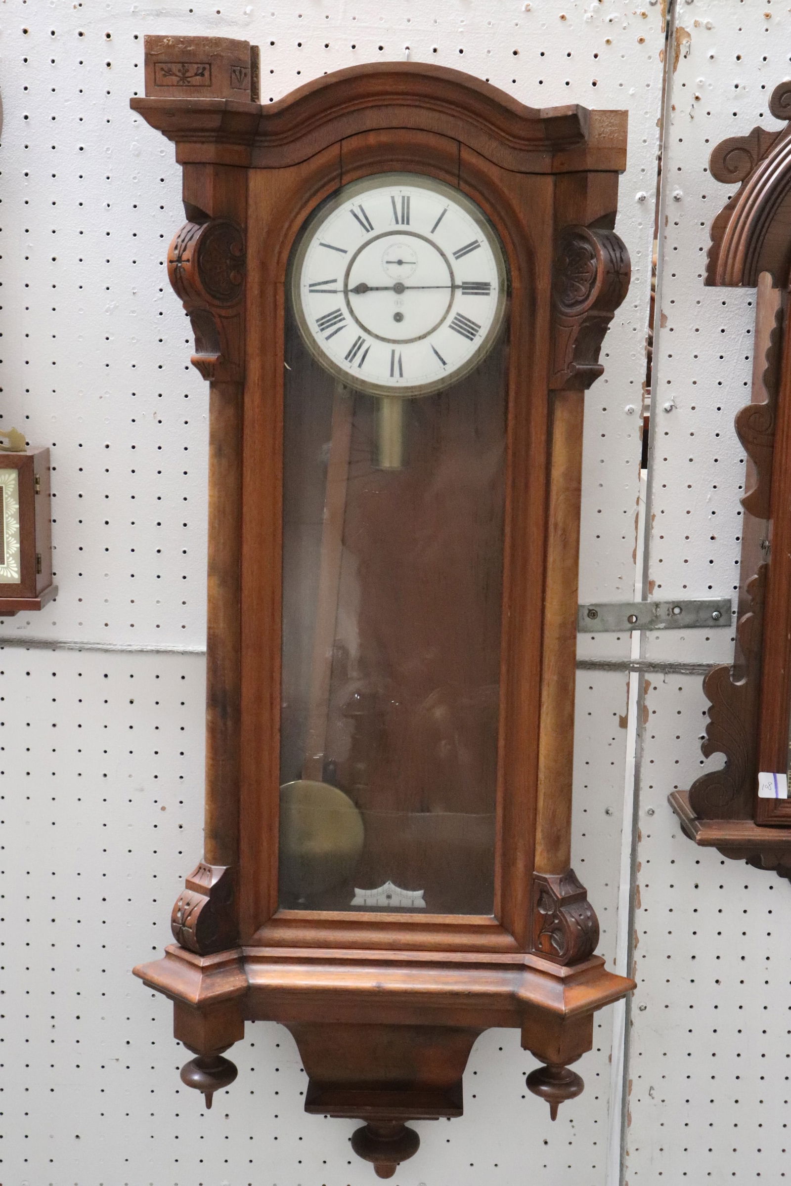 Antique walnut cased keywind wall clock