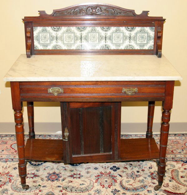 ANTIQUE WASH STAND, TILE SPLASH-BACK, H 41",