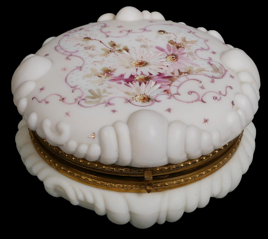 Lot of Five C.F. Monroe "Wave Crest" Glass PiecesMar 14, 20263 pc Lot Wavecrest Victorian Glass Dresser Boxes & Biscuit Jar Mirrored Floral and Dancing Ladies6 days Left19th Century Wavecrest Opal Glass Putti Box by CF Monroe3 days Left19th C. FLORAL WAVE CREST JEWELRY VANITY DRESSER BOX19 hrs LeftRound Dresser Box, Unmarked Wave CrestMar 21, 2026Wavecrest Collars & Cuffs Glass Dresser BoxMar 14, 2026Wavecrest Egg Crate Dresser Box UnmarkedMar 28, 2026A massive antique SEVRES porcelain box / casketMar 15, 2026C F Monroe Wavecrest Art Glass Jewelry CasketMar 15, 2026Dresser Box, Unmarked Wave Crest, Egg Crate MoldMar 21, 20263 Wavecrest Glass Dresser BoxesMar 14, 2026C F Monroe Wavecrest Art Glass Jewelry CasketMar 15, 202619th Century Wavecrest Hand Painted Floral Glass Collar BoxMar 02, 2026Signed Wavecrest Victorian Glass Large Collars & Cuffs Box5 days LeftDresser Box, Unmarked Wave Crest, Egg Crate MoldMar 21, 2026Jewel Box, Unmarked Wave Crest Egg Crate MoldMar 21, 2026