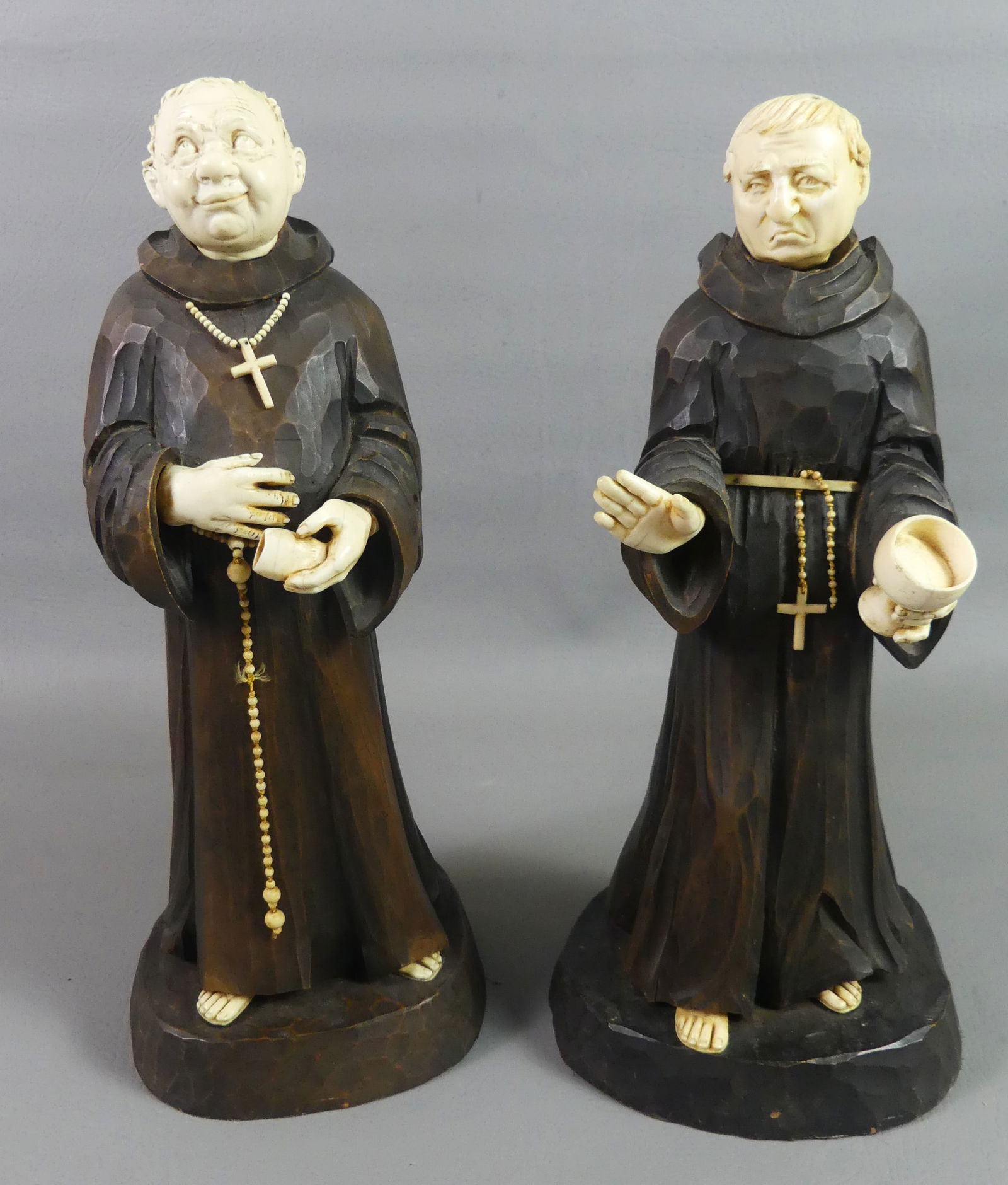 ANTIQUE WOOD MONK FIGURES - BONE FEATURES