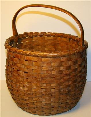 Antique 19th Century Gathering Basket with Bentwood Handle