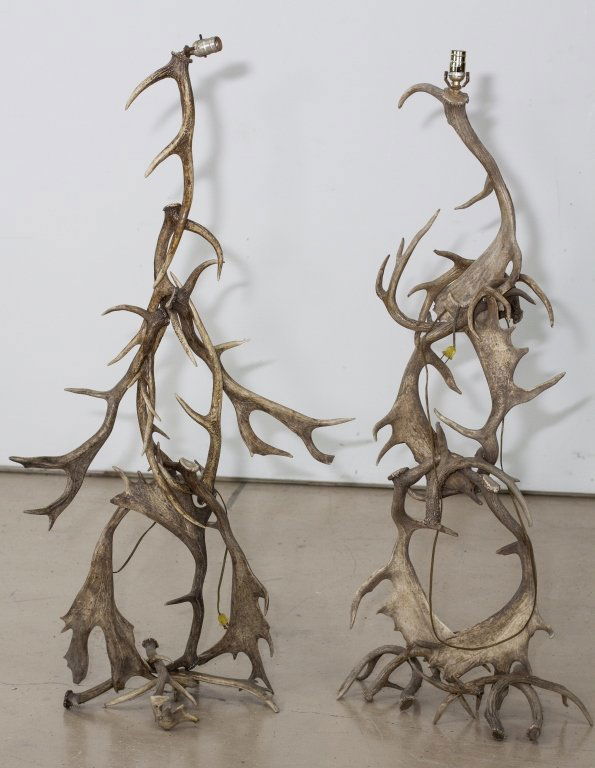 SoldPr. Clamshell and Antler LampsPair of clamshell lamps, with deer antler bodies, larger 18" h. Provenance: From the collection of interior designer Thomas Britt.See Sold Price