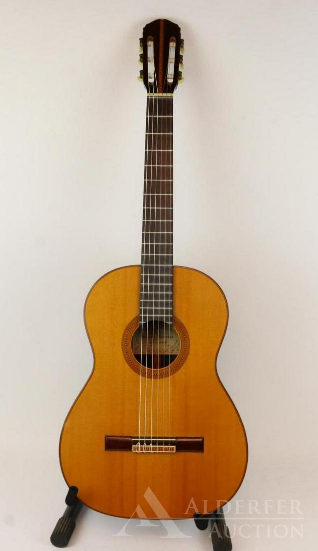 SoldManuel Rodriguez Classical GuitarManuel Rodriguez Classical Guitar Model C. c.1986 Made in Spain. Canadian Red Cedar Top, Indian Rosewood sides and back. Ebony Fingerboard. Gold-plated tuning machines. Augustine black-label strings.See Sold Price