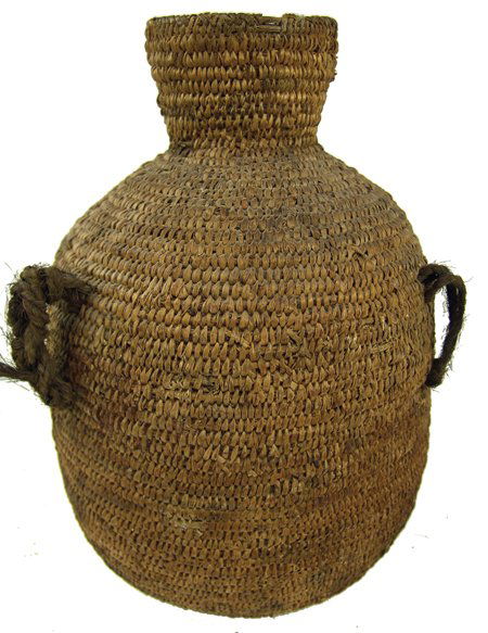 Antique Native American Hupa Coiled Basket Covered Bottle