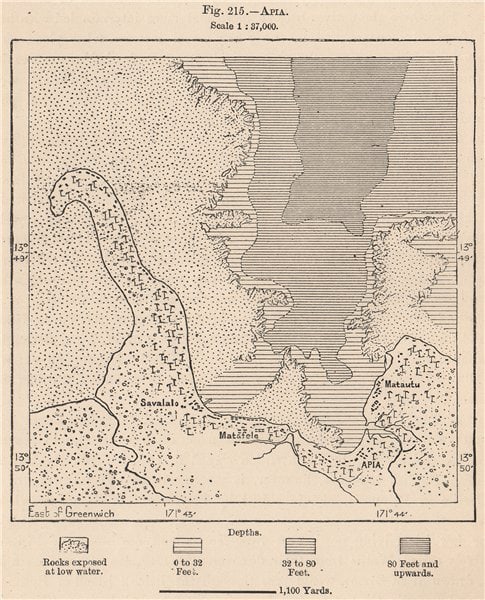 Apia. Samoa. Polynesia 1885 Old Antique Vintage Map Plan Chart
