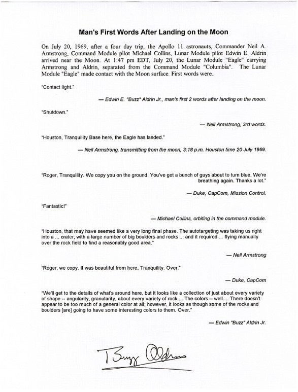 Apollo 11 Buzz Aldrin Letter Signed UACC PADA