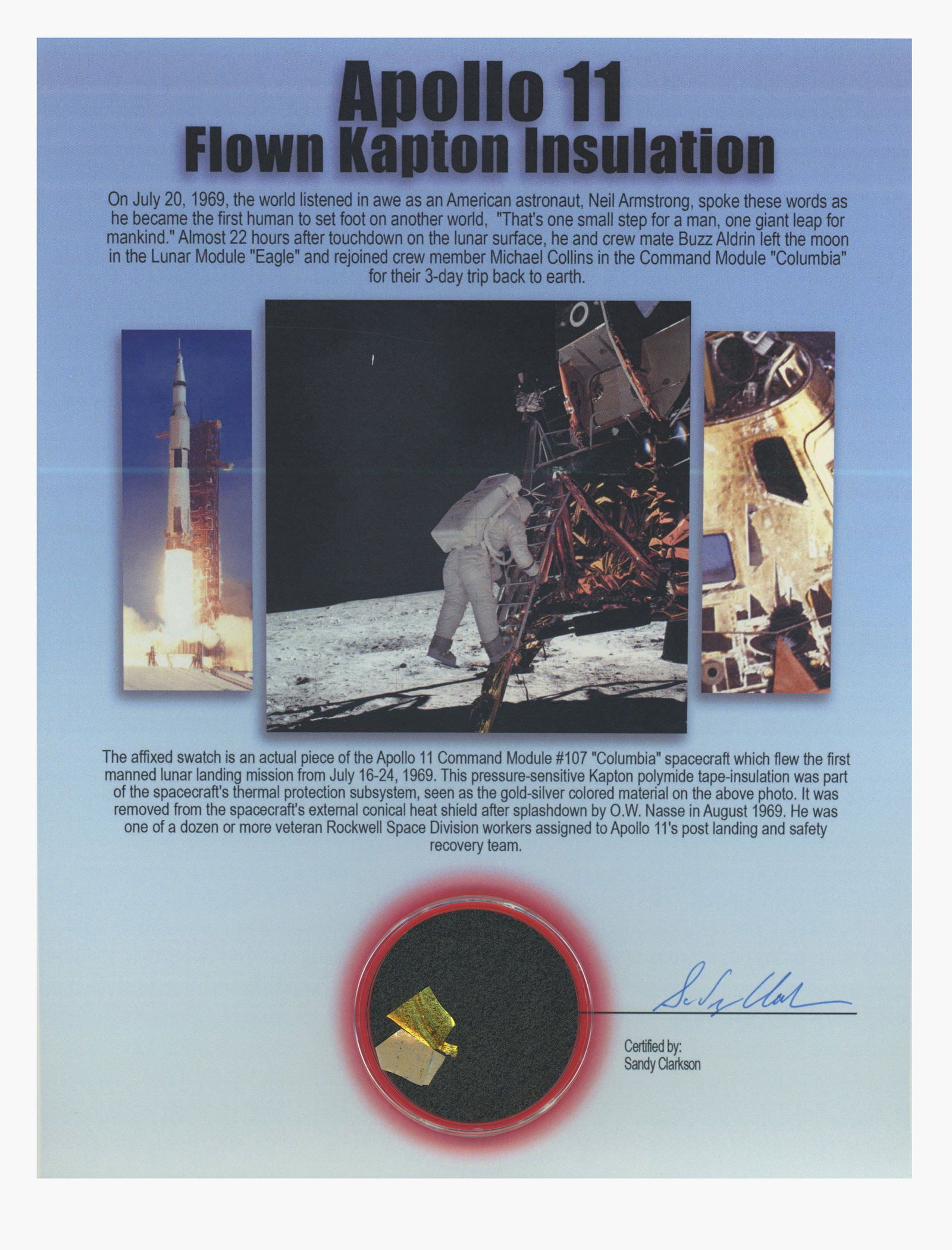 Apollo 11 – Flown Kapton Foil Segment – Thermal Insulation from Command Module “Co