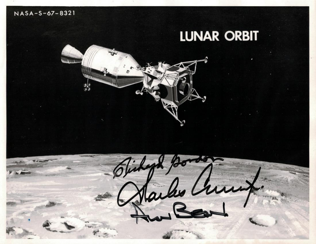 Nasa, Apollo 12 Crew: Charles Conrad, Jr., Richard F. Gordon, Alan L. Bean5 days LeftApollo 12 Crew Signed 8x10 Photo by Conrad Gordon Bean Beckett COA3 days LeftAPOLLO 11 - SIGNED FIRST DAY COVER (MOON LANDING ISSUE, JULY 20, 1969)6 hrs Left[Apollo 12] 3-PART PANORAMA OF ALAN BEAN AT THE LM INTREPID ON THE OCEAN OF STORMSMar 12, 2026Apollo 11 Crew Signed Display by Armstrong Collins Aldrin Zarelli Authenticated22 hrs LeftApollo 11 Crew Signed Display by Armstrong Collins Aldrin Zarelli Authenticated2 days Left[Apollo 17] CSM AMERICA REUNITING WITH LM CHALLENGER FOR THE LAST RETURN FROM THE MOON TO EARTHMar 12, 2026[Apollo 12] ALAN BEAN EMERGES FROM THE LUNAR MODULE TO TAKE HIS FIRST STEPS ON MOONMar 12, 2026Apollo 11 Signed Facismile PhotoMar 14, 2026Apollo 17] PORTRAIT OF EUGENE CERNAN, THE LAST MAN ON THE MOON, WITH THE ROVERMar 12, 2026Paul Calle – Space Artist – Signed Apollo 11 Anniversary First Day CoverLunar Module Eagle Ascends Moon. Moffett Field: NASA AMES Research Center, 1969. Mar 12, 2026[Apollo 10] THE FIRST SPACECRAFT PHOTOGRAPHED IN LUNAR ORBIT: COMMAND MODULE CHARLIE BROWNMar 12, 2026[Apollo 12] CRATER COPERNICUS AT SUNRISEMar 12, 2026[Apollo 11] BUZZ ALDRIN BESIDE LUNAR MODULE EAGLEMar 12, 2026[Apollo 15] JAMES IRWIN SALUTES BESIDE THE U.S. FLAG, LUNAR MODULE AND THE FIRST LUNAR ROVERMar 12, 2026