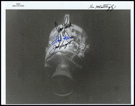 Apollo 16 Lot of 3 NASA Signed Photos, Including 2 MoonwalkersFeb 18, 2026Alan Shepard Pair of Signed NASA Official Photos, Mercury & Apollo 14Feb 18, 2026Pair of Apollo 12 Crew-Signed Photos: Crescent Earth NASA Red No. Photo & Lunar Lander on EarthFeb 18, 2026Pair of Apollo 12 Signed Photos: Flag on Moon NASA Red No. Photo & Lunar Lander on EarthFeb 18, 2026Apollo 13 "Damaged Service Module" Signed PhotographFeb 14, 2026Apollo 12 Crew Signed NASA Numbered PhotographFeb 14, 2026Apollo 13 Lunar Module "Aquarius" Fred Haise Signed PhotographFeb 14, 2026Apollo 14 Prime Crew-Signed Photo, Eighth Manned Apollo MissionFeb 18, 2026Apollo 13 Fred Haise Signed Launch PhotographFeb 14, 2026Skylab 2/3 Crew Signed NASA Red Numbered PhotographFeb 14, 2026Astronaut James Lovell Signed PhotographFeb 14, 2026Fred Haise Collection of (3) Signed Photographs & Signed First Day CoverFeb 18, 2026Vintage NASA Apollo 13 Emblem Haise & Swigert Signed PhotographFeb 14, 2026Apollo 14 NASA Numbered Astronaut Edgar Mitchell Signed PhotographFeb 14, 2026Apollo 14 NASA Numbered Astronaut Edgar Mitchell Signed PhotographFeb 14, 2026Gene Kranz Apollo 13 NASA Flight Director Signed PhotographFeb 14, 2026