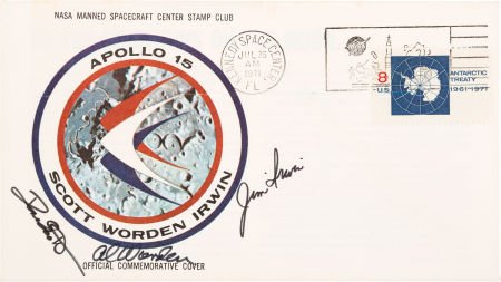 Apollo 15 Crew-Signed Insurance Cover Originally