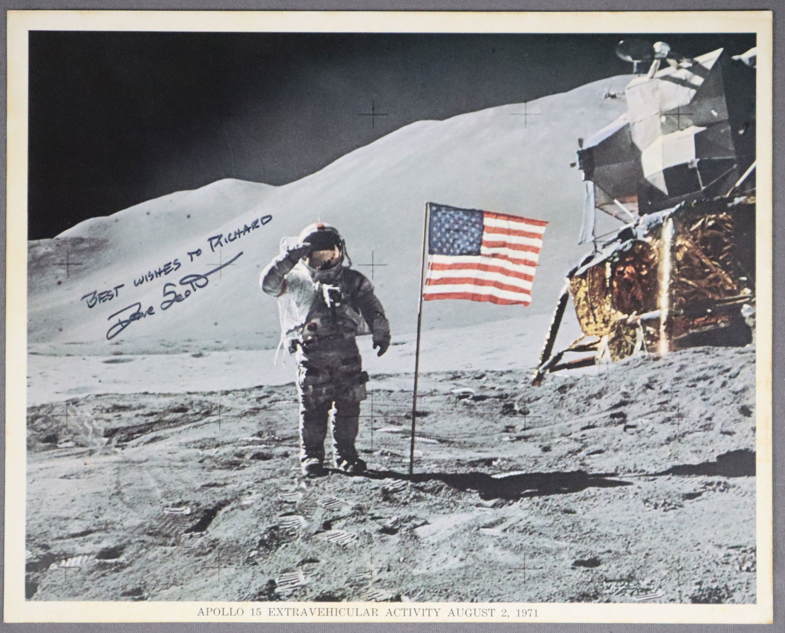 Eugene Cernan Apollo 17 Signed 8x10 Photo BAS Authenticated5 hrs Left[Apollo 15] JAMES IRWIN SALUTES BESIDE THE U.S. FLAG, LUNAR MODULE AND THE FIRST LUNAR ROVERMar 12, 2026[Apollo 12] PETE CONRAD HOLDING THE U.S. FLAG ON THE OCEAN OF STORMSMar 12, 2026Apollo 12 Crew Signed 8x10 Photo by Conrad Gordon Bean Beckett COAMar 06, 2026[Apollo 15] DAVID SCOTT WITH THE TELEPHOTO CAMERA AND THE LUNAR ROVER AT STATION 10Mar 12, 2026Buzz Aldrin Signed Custom Framed Display Apollo 11 JSA Authenticated3 days LeftFramed 8x10 Photograph Signed by Edwin Buzz Aldrin Apollo 11 Beckett Authenticated6 days Left[Apollo 16] JOHN YOUNG'S JUMPING SALUTEMar 12, 2026Apollo 11 Signed Facismile PhotoMar 14, 2026[Apollo 11] A MAN ON THE MOON: THE ICONIC VISOR PORTRAIT OF BUZZ ALDRINMar 12, 2026[Apollo 16] JOHN YOUNG CONDUCTING SCIENTIFIC WORK AT THE DESCARTES RESEARCH SITE ON THE MOONMar 12, 2026[Apollo 11] BUZZ ALDRIN AND THE FIRST U.S. FLAG ON THE MOONMar 12, 2026Autographs, including Buzz Aldrin4 hrs Left[Apollo 11] LARGE FORMAT: BUZZ ALDRIN BESIDE THE FIRST U.S. FLAG ON THE MOONMar 12, 2026[Apollo 15] PORTRAIT OF JAMES IRWIN AND THE LUNAR ROVER IN FRONT OF MOUNT HADLEYMar 12, 2026[Apollo 11] BUZZ ALDRIN AT TRANQUILITY BASE WITH THE LM EAGLE, U.S. FLAG, AND EXPERIMENTSMar 12, 2026