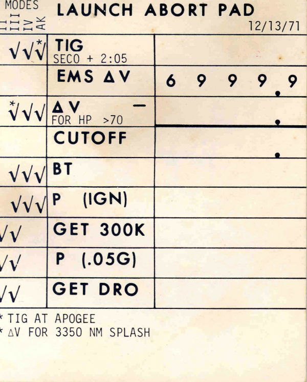 Apollo 16 '"Launch Abort Pad" Checklist