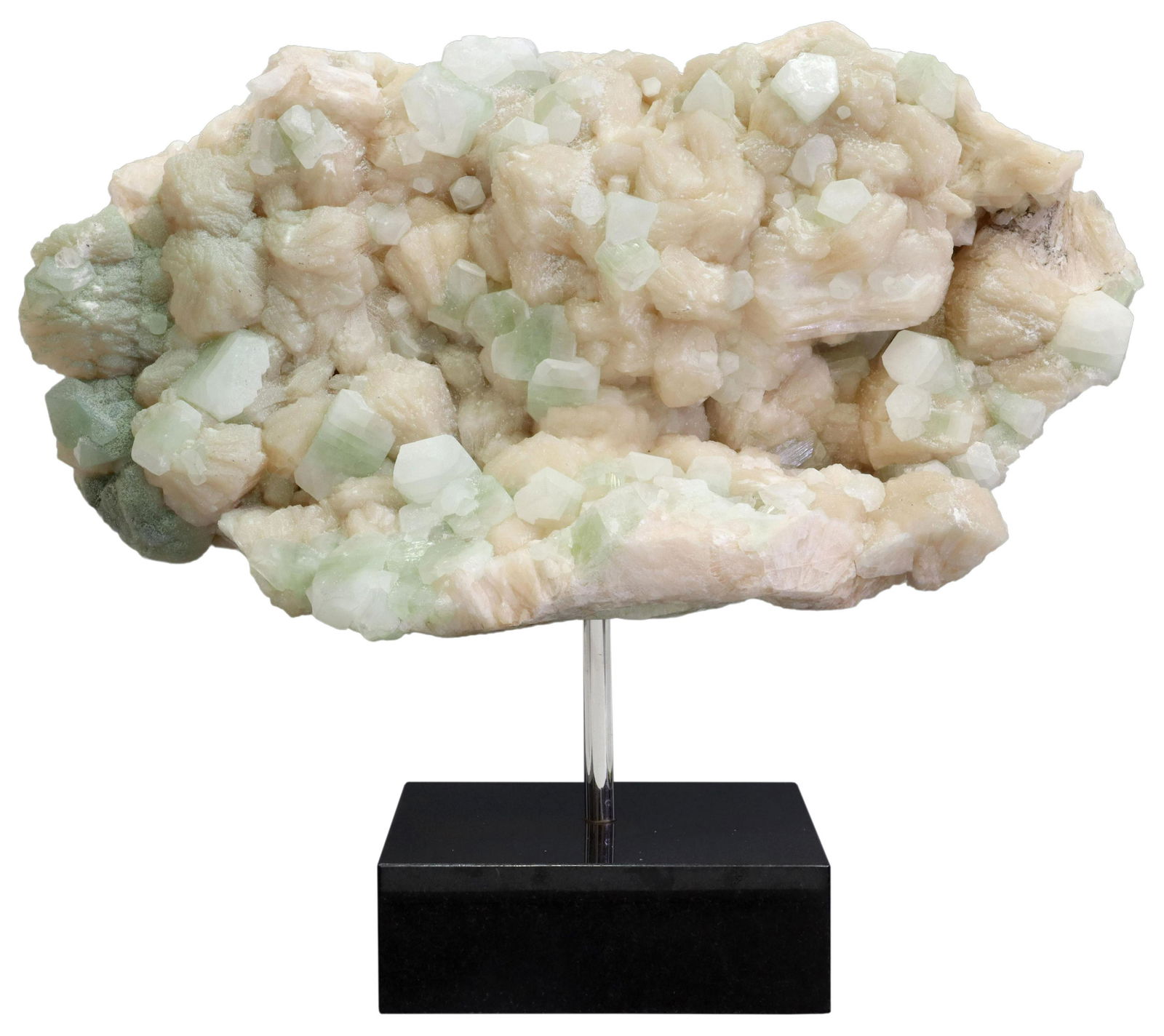 SoldGEOLOGICAL APOPHYLLITE CLUSTER ON BLACK GRANITE BASEGeological apophyllite cluster, on black granite base, specimen: approx 4.5"h, 5.5"w, 4"d, overall: approx 12.5"h, 5.5"w, 4"d, 9.5lbsSee Sold Price
