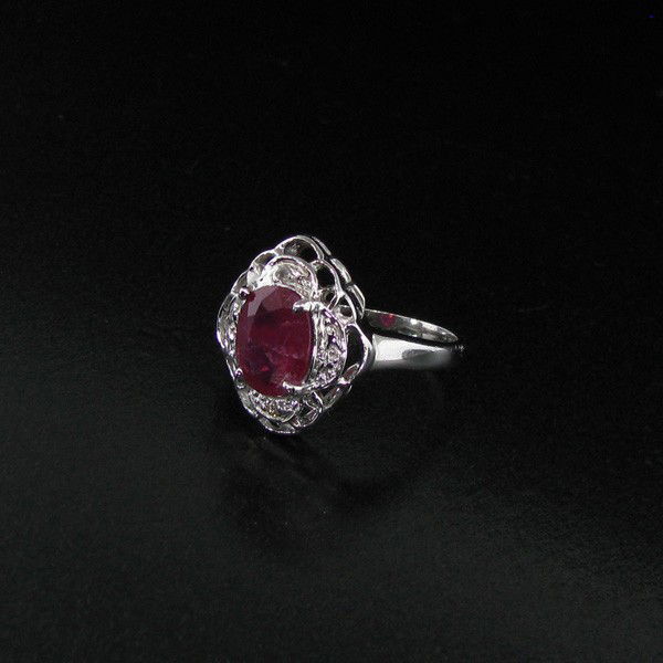 APP: 3k 1CT Ruby & Diamond Platinum Sterl Silver Ring