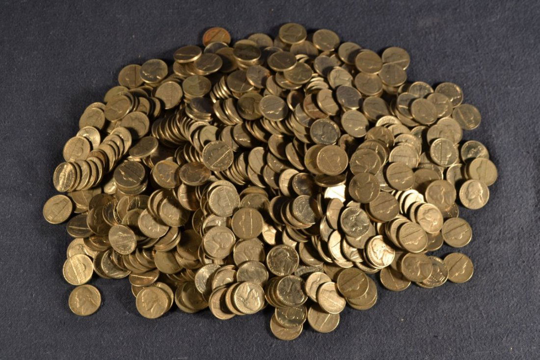 SoldNINE ROLLS OF U.S. WARTIME NICKELSNINE ROLLS OF U.S. WARTIME NICKELS ~ APPROXIMATELY THREE HUNDRED AND SIXTY U.S. JEFFERSON NICKELS (WARTIME/SILVER ALLOY). DATED 1942, 1943, AND 1945. ASSORTED CONDITIONS. VINTAGE U.S. COINS.See Sold Price