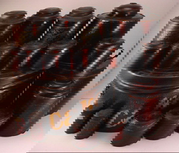 Appx. 15 Pc. Tin Set. Tea, Coffee, Cake, Spices e
