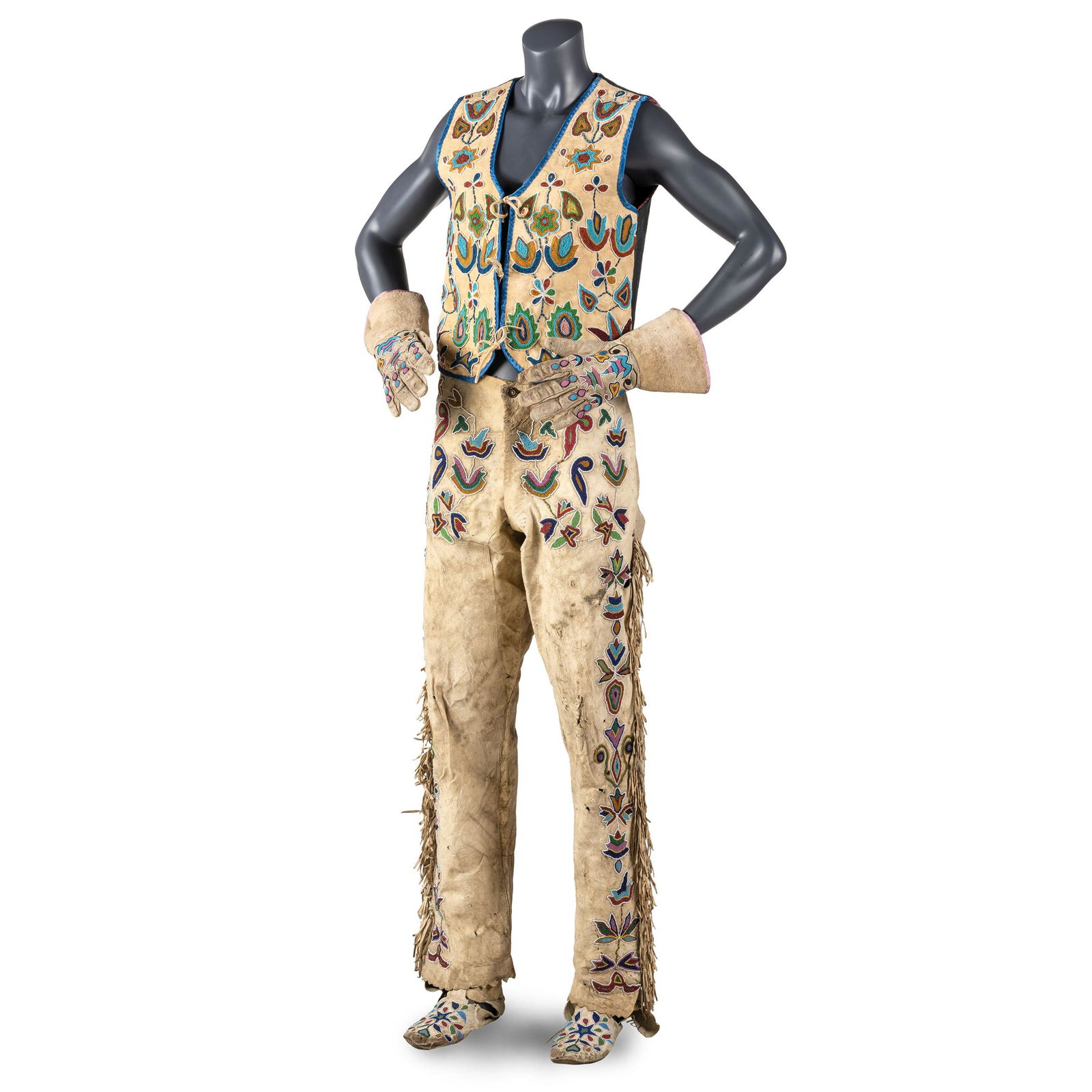 Apsaalooke (Crow) Beaded Hide Vest, Gauntlets, Pants,