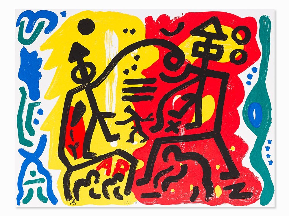 A.R. Penck, Figurative Composition, Color Serigraph,