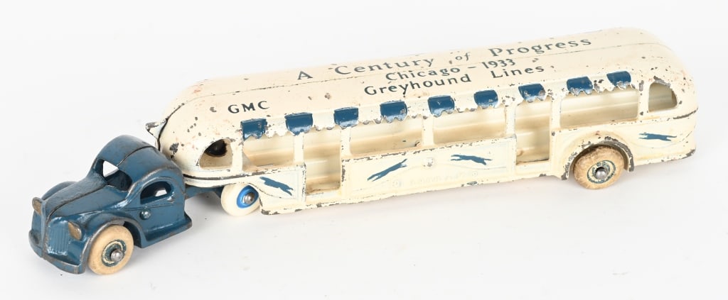 LOT OF TOY CARS AND BUS7 days LeftCast Iron Red Dump Truck Flat bed Car Rubber Wheels5 days LeftGreyhound Lines, New York World's Fair busMar 27, 2026Buddy "L" Wooden "Greyhound Lines" BusKingsbury Toys Greyhound No. 288 BusAntique Arcade Mfg Freeport, Illinois Cast Iron CoupeMar 07, 20261920's Skoglund and Olson Seto Sweden Cast Iron BusMar 28, 2026Die Cast Greyhound Lines Friction BusMar 02, 2026Antique Arcade Mfg Freeport, Illinois Cast Iron Ford A Mode CoupeMar 07, 2026Buddy "L" Passenger BusJapanese Tin Litho Battery Operateed Bus By TRADE MARK MODERN TOYS JAPANMar 01, 2026Savoye USA 1930s Slush Cast Red Motorcoach TrailerMar 15, 2026Group of Tin-Litho VehiclesMar 07, 2026Marigold Coach Lines SSP Bus Shaped SignMar 14, 2026Vintage Cor-Cor Pressed Steel Inter-City BusMar 07, 2026Dayton Hill Climber Trolley Car