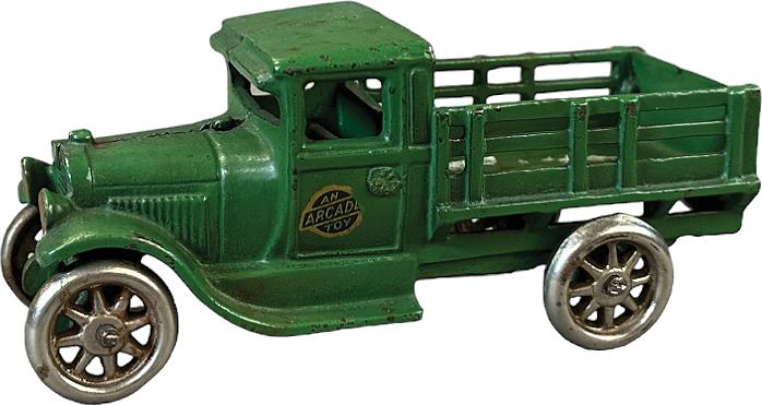 SoldARCADE INTERNATIONAL STAKE TRUCK303. ARCADE INTERNATIONAL STAKE TRUCK | Book example, page 66, "Cast Iron Automotive Toys, 2000." | 10.5" l. | (Pristine Condition) | $800 - $1,200See Sold Price