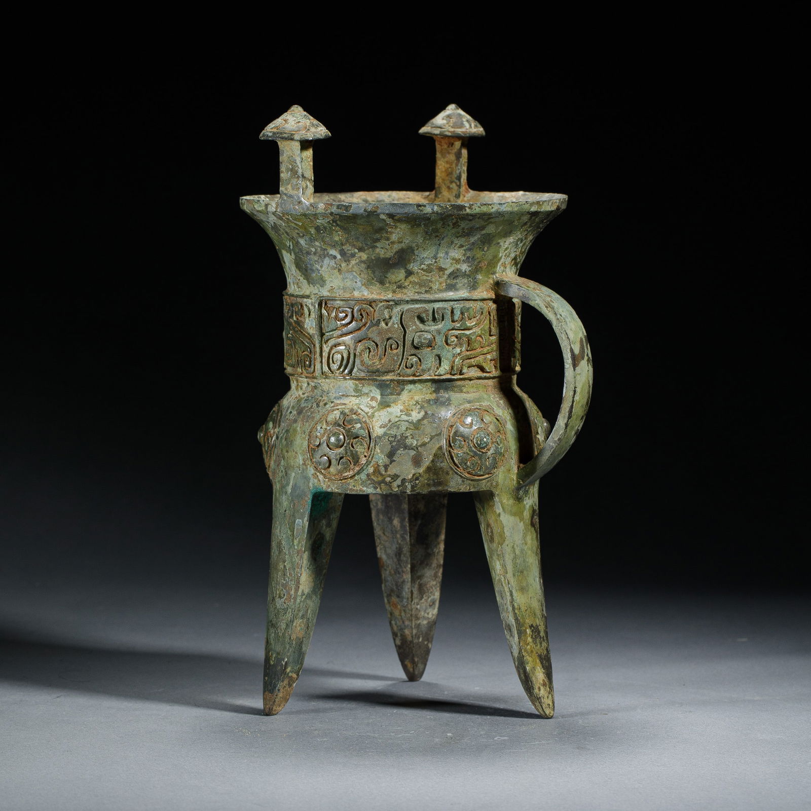 ARCHAIC BRONZE TRIPOD WINE VESSEL