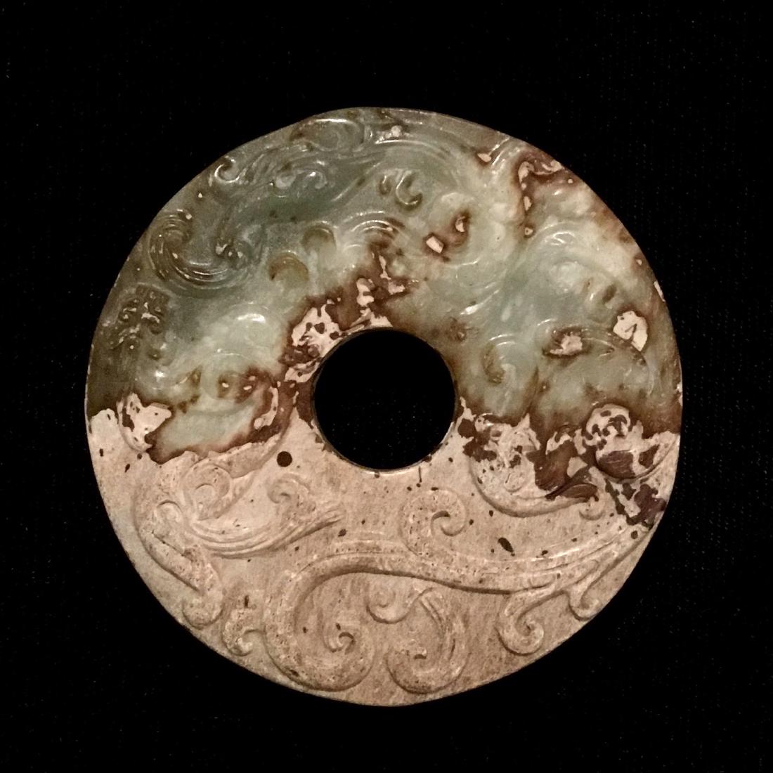 A ANCIENT JADE BI DISC WITH CHI-DRAGON DESIGN