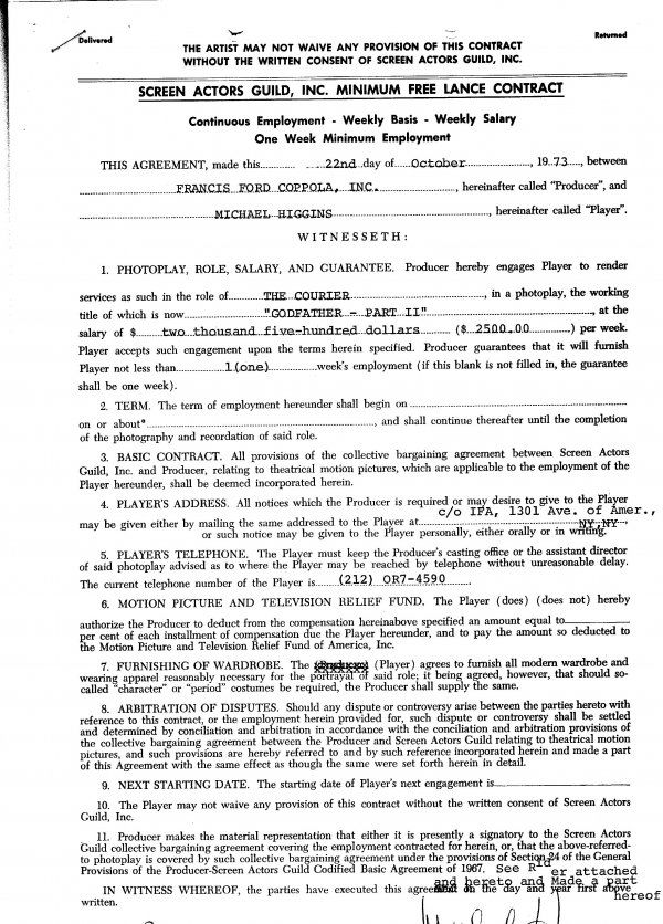 Archive [The Godfather] Document Signed UACC PADA