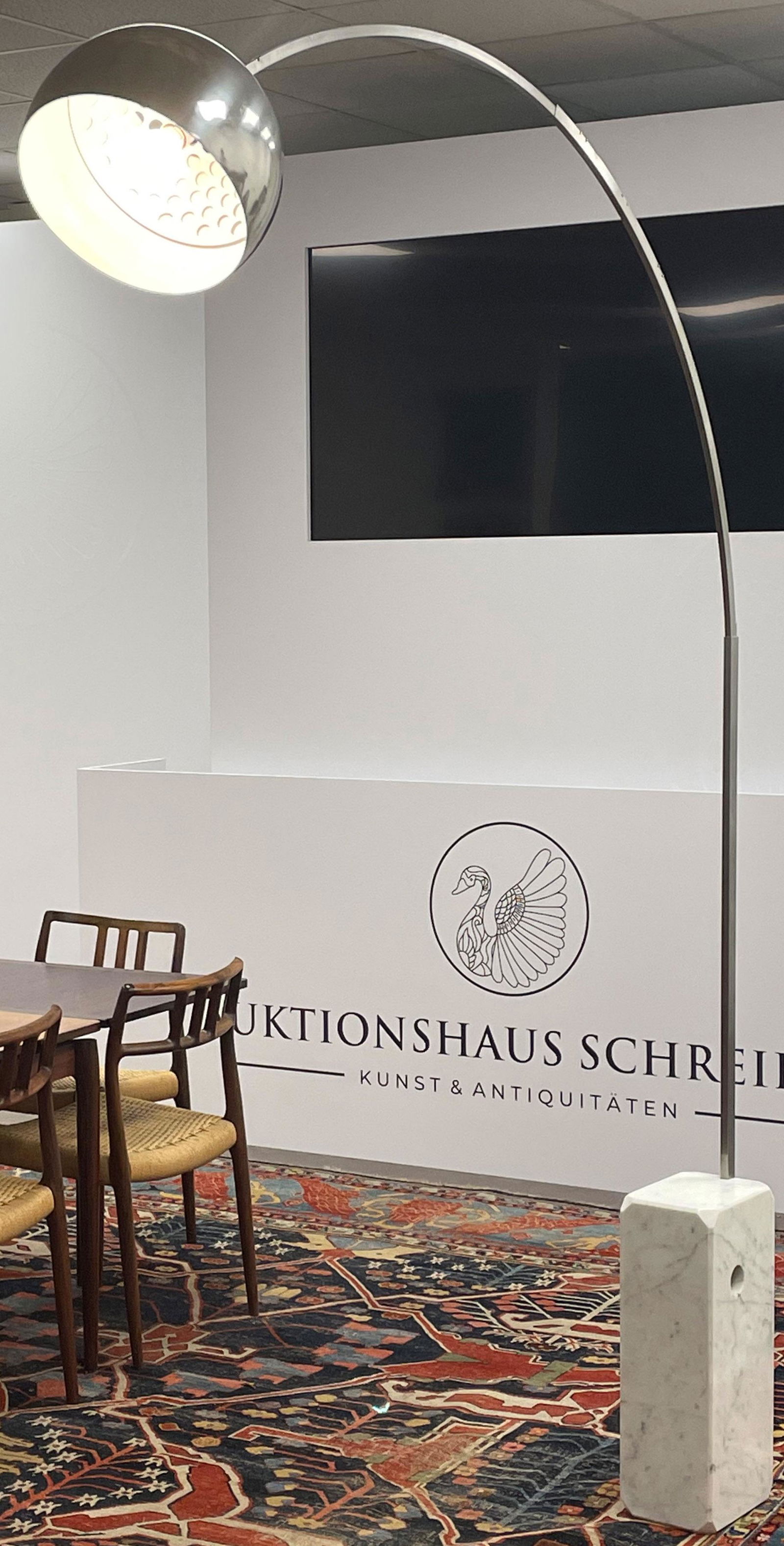 SoldArco Style Marble & Chrome Arc LampA chrome Arco style arc lamp with marble base Appx. Dimensions:90x40See Sold Price