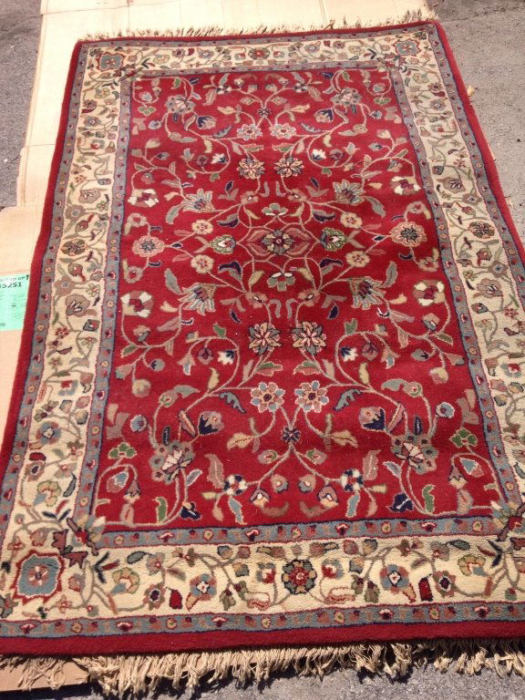 APPROX 4' 5" x 3' 3" HANDMADE WOOL RUG