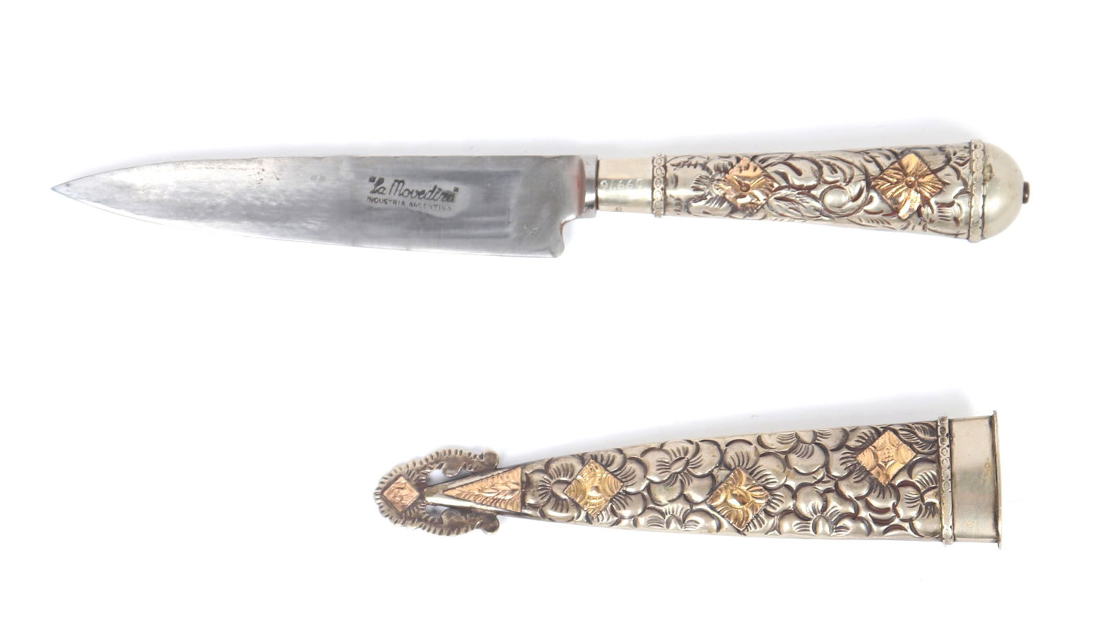 Argentinian Gaucho Embossed Silver & Gilt Knife