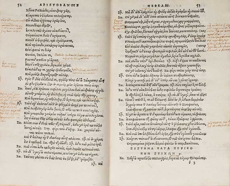 SoldARISTOFANE. Aristophanis comoediae undecim. [s.l.]:ARISTOFANE. Aristophanis comoediae undecim. [s.l.]: Giovanni Grifo, 1548. Volume in 8vo (gore di umidità e lievi fioriture) in lingua greca. Legatura in mezza pelle.See Sold Price