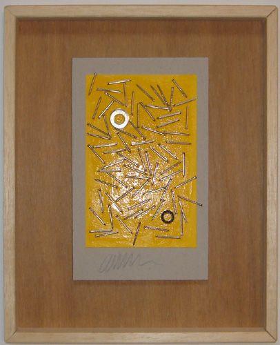 Arman Pierre Fernandez Original Accumulation Sculpture Signed Paint Brush Art23 hrs LeftStephen Edlich (American, 1944–1989) Untitled, 1980Feb 26, 2026Merton D. Simpson (American) Abstract Expressionist 1985, Oil on BoardFeb 26, 2026Etienne Hajdu French Modern Sculpture2 days LeftJan Wunderman "Yes" Mixed Media Collage, 1996Feb 26, 2026Arman MAGNETISM II Mixed Media Sculpture, 55"H5 days LeftRobert Roehrenbeck Untitled Mixed Media, 1964Apr 14, 2026Uri Shulevitz Painted Wood Assemblage SculptureFeb 26, 2026Teppei Kaneuji Untitled Mixed Media, 2004Mar 05, 2026Bruce Dorfman "Past Imperfect" Mixed Media, 1998Mar 26, 2026Christopher Sturgess-Lief: Disintegration of Solid Forms to Space2 days LeftArnaldo Pomodoro 1926-2025 Abstract Bronze ReliefFeb 25, 2026Doug Coffin, mixed media sculpture, 19823 days LeftMichael Mazur (1935-2009) Abstract Relief CollageFeb 25, 2026Abstract Round Metal Sculpture1 day LeftBertrand Dorny Untitled (Montreal Collage), 1987Feb 27, 2026