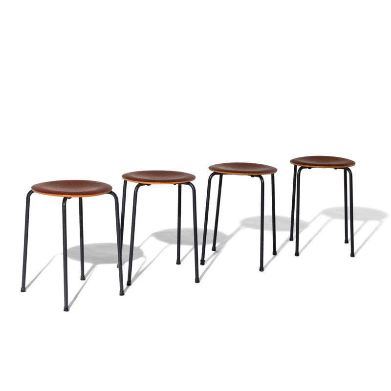 Arne Jacobsen (Attr) Made in Denmark teak wood and metal dot stools, set of 4. 17 1/2"H x 14"W (oneRipley Auctions4.5(195)$100(2 bids)35 mins Left
