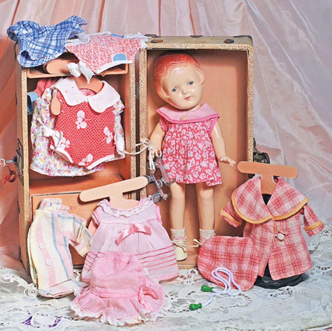 ARRANBEE COMPOSITION DOLL “NANCY” WITH TRUNK AND