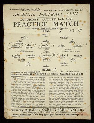 Arsenal pre-season practice match programme 1930-3