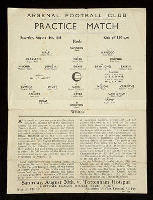 Arsenal pre-season practice match programme 1938-3